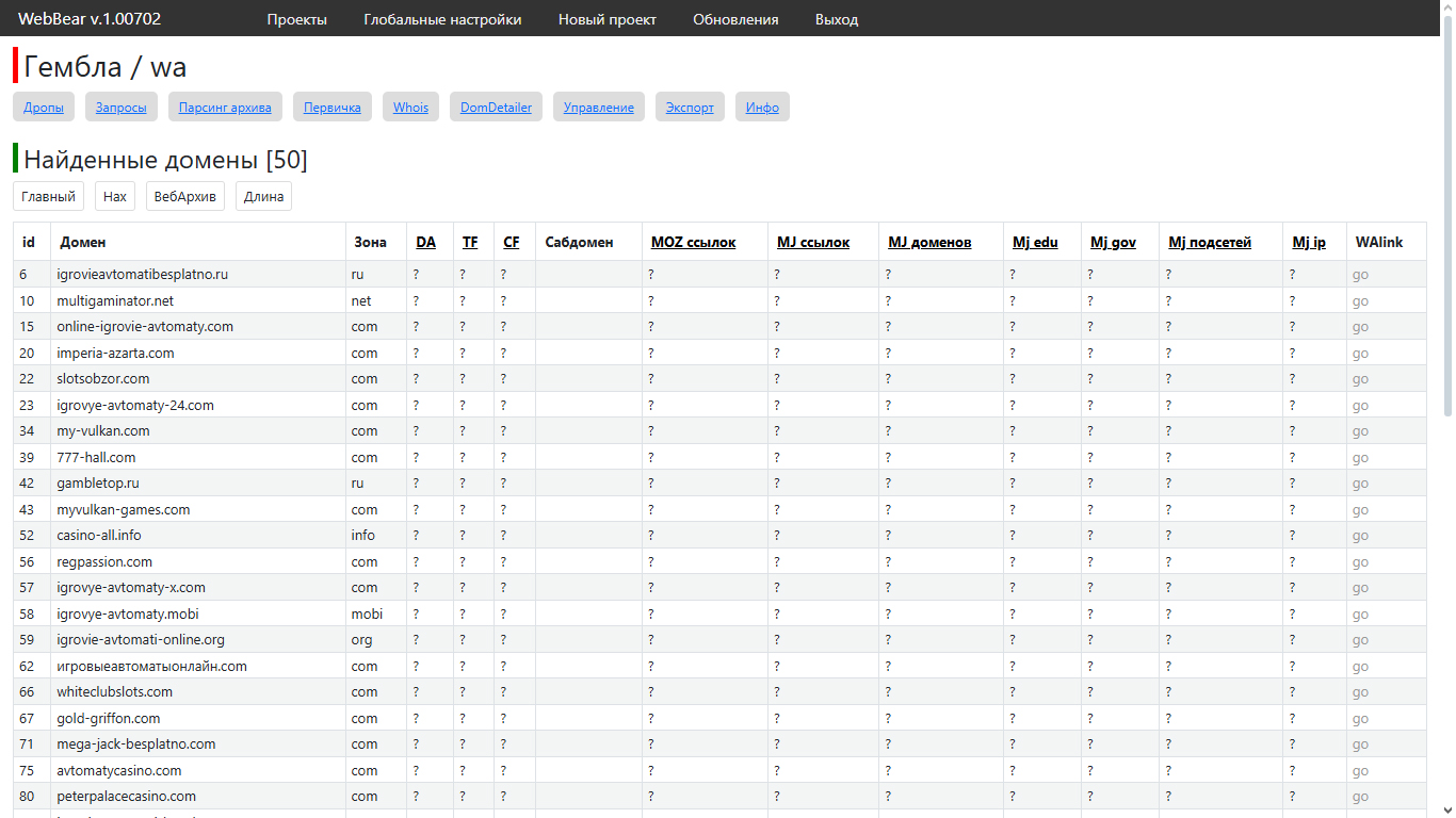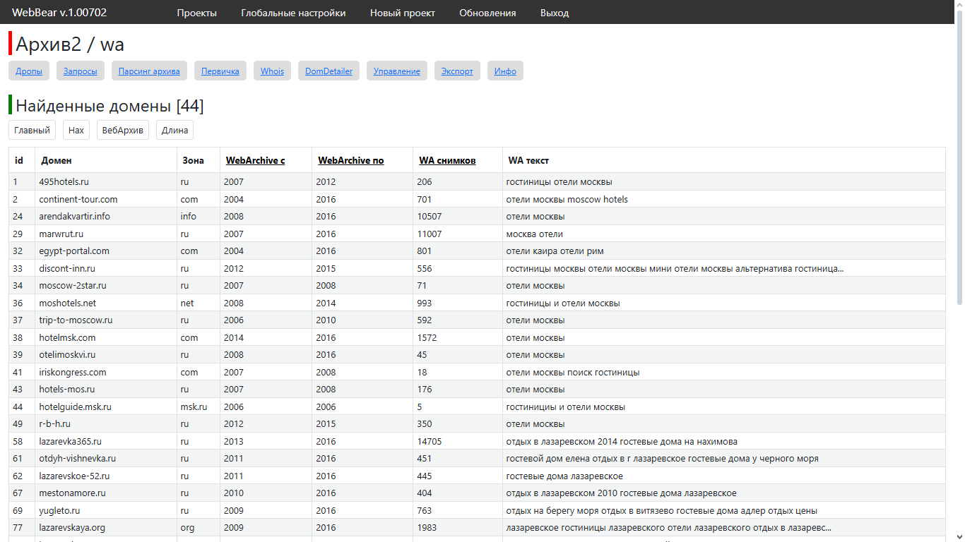 WebBear - мощный комбайн для поиска дроп-доменов. Возможно, самый мощный на рынке.